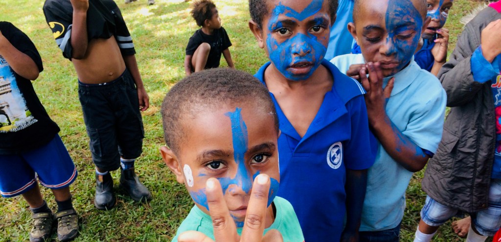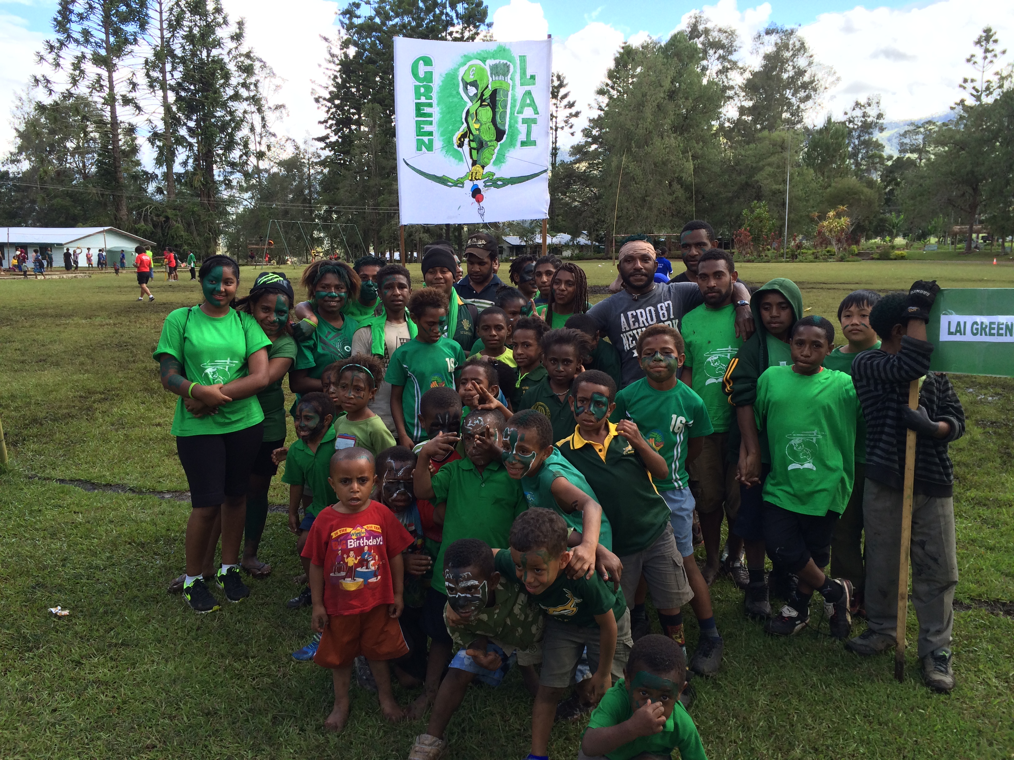 A Sports Day each year at HLIS involves four teams of students competing with each other in a variety of competitive games. The pictures below show primary students competing in a game of tunnel ball, as well as two of the teams competing: Lae Green and Ambum Blue. The four school teams are named after the major rivers in the Enga Province: Lae, Ambum, Lagaip, and Minamp.